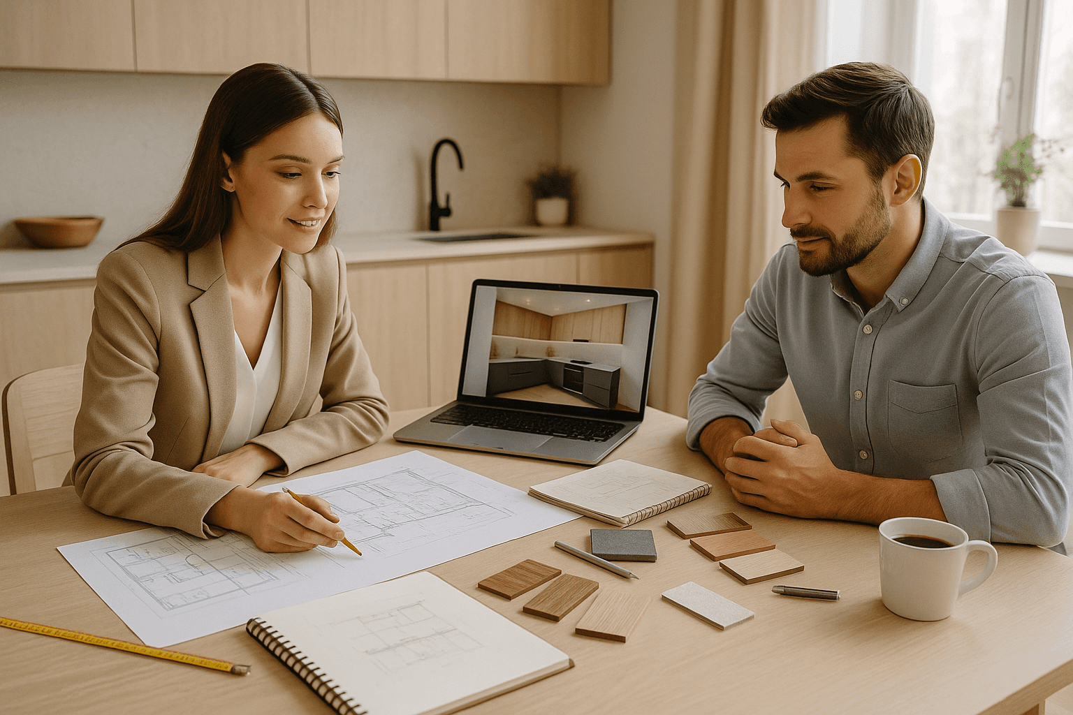 Prvním krokem po předání podkladů je osobní setkání v našem studiu. Společně si podrobně projdeme vaše představy, přání i konkrétní potřeby ohledně nové kuchyně. Vysvětlíme vám celý proces, nasloucháme vašim požadavkům a poradíme, jak maximálně využít potenciál vašeho prostoru. Na základě dodaných informací připravíme návrh kuchyně na míru – včetně vizualizace, která vám umožní představit si, jak bude vaše budoucí kuchyně skutečně vypadat. Získáte přehled o možných variantách uspořádání, stylových i materiálových možnostech a také o výběru spotřebičů.